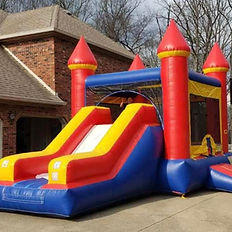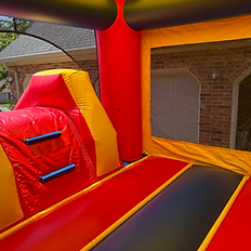 13'W x 22'L x 15'H Slide Platform 5'H This bounce house combo features a bounce area with a 5' high slide. Dry use only